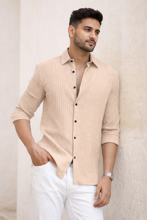 Premium Beige Solid Shirt for Men – Minimal & Elegant